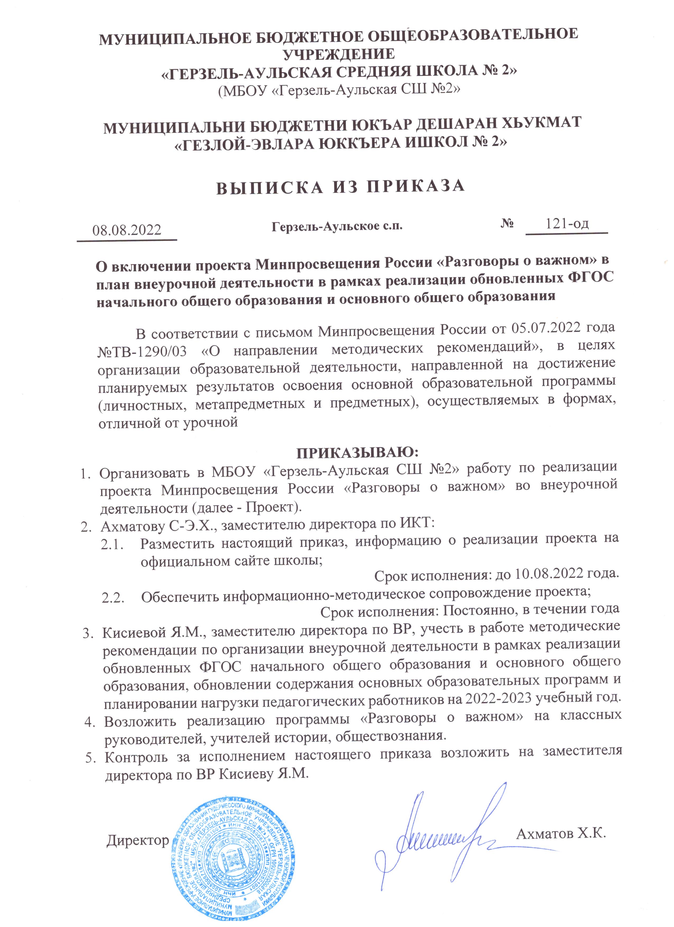 Приказ р включении проекта Минпросвещения России Разговоры о важном в план внеурочной деятельности