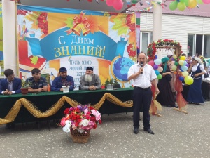 Торжественную часть праздника открыл директор школы Ахматов Хасаин Канаевич, который поздравил всех присутствующих с началом учебного года, учителям - успехов в профессиональной деятельности, творчества и терпения
