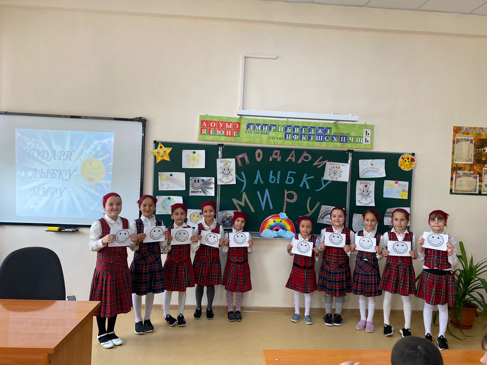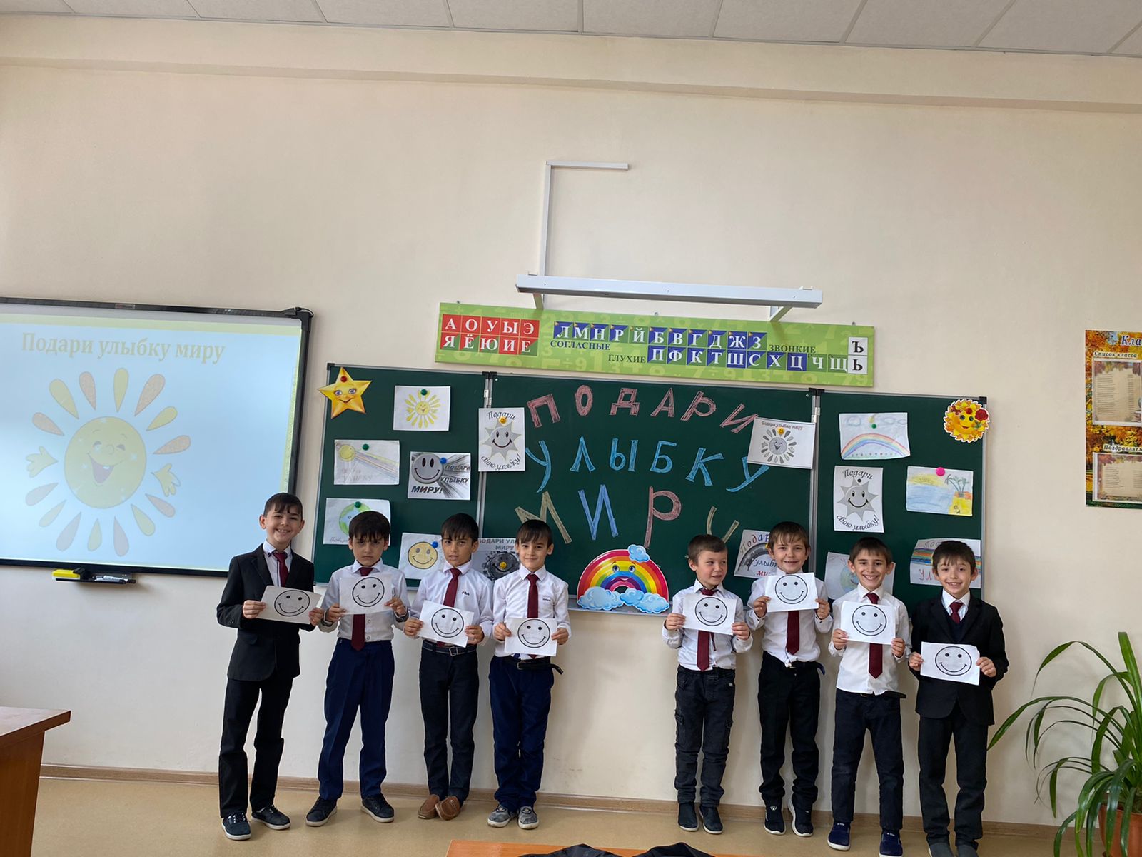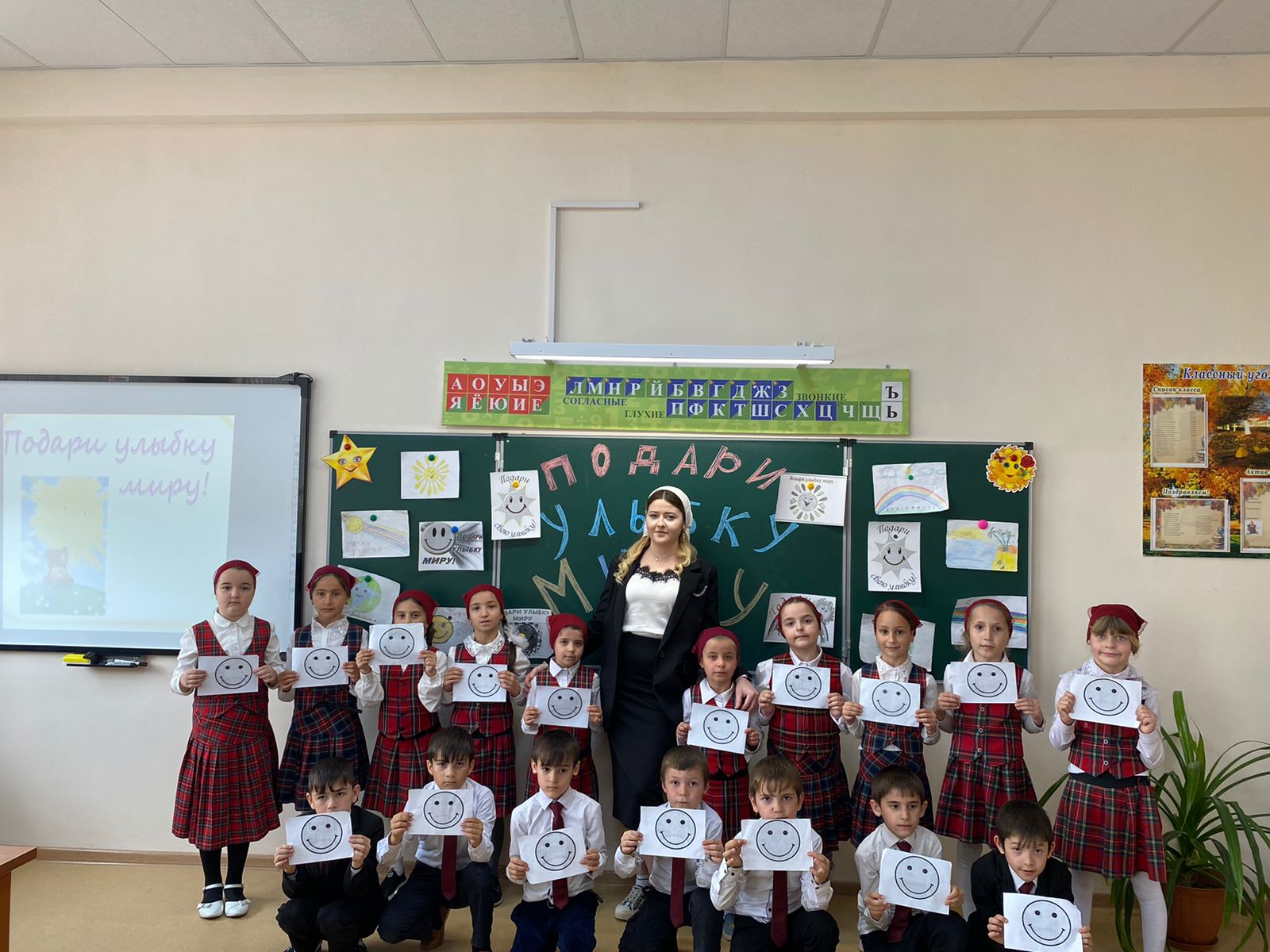 19.04.2022 г. в 1 «Б» классе МБОУ «Герзель-Аульская СШ№2» был проведен классный час на тему: «Подари улыбку миру».