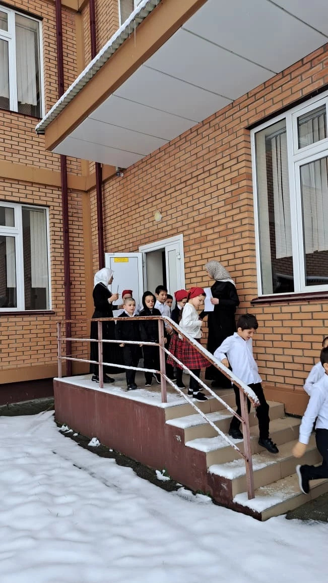 Учащиеся и сотрудники школы покинули здание в соответствии с заранее определёнными маршрутами.